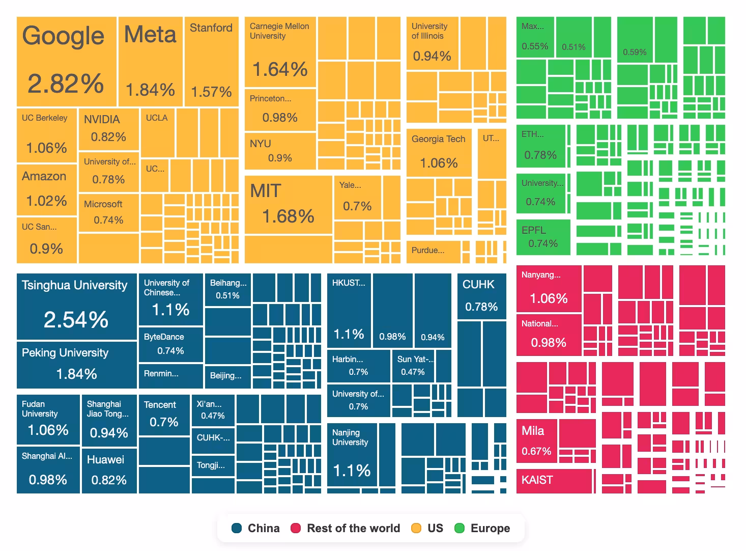 Within that broad picture there is a lot of interesting texture. The AI moonshot is playing out differently in different geopolitical contexts. We see massive returns to scale in US corporations and Chinese universities.